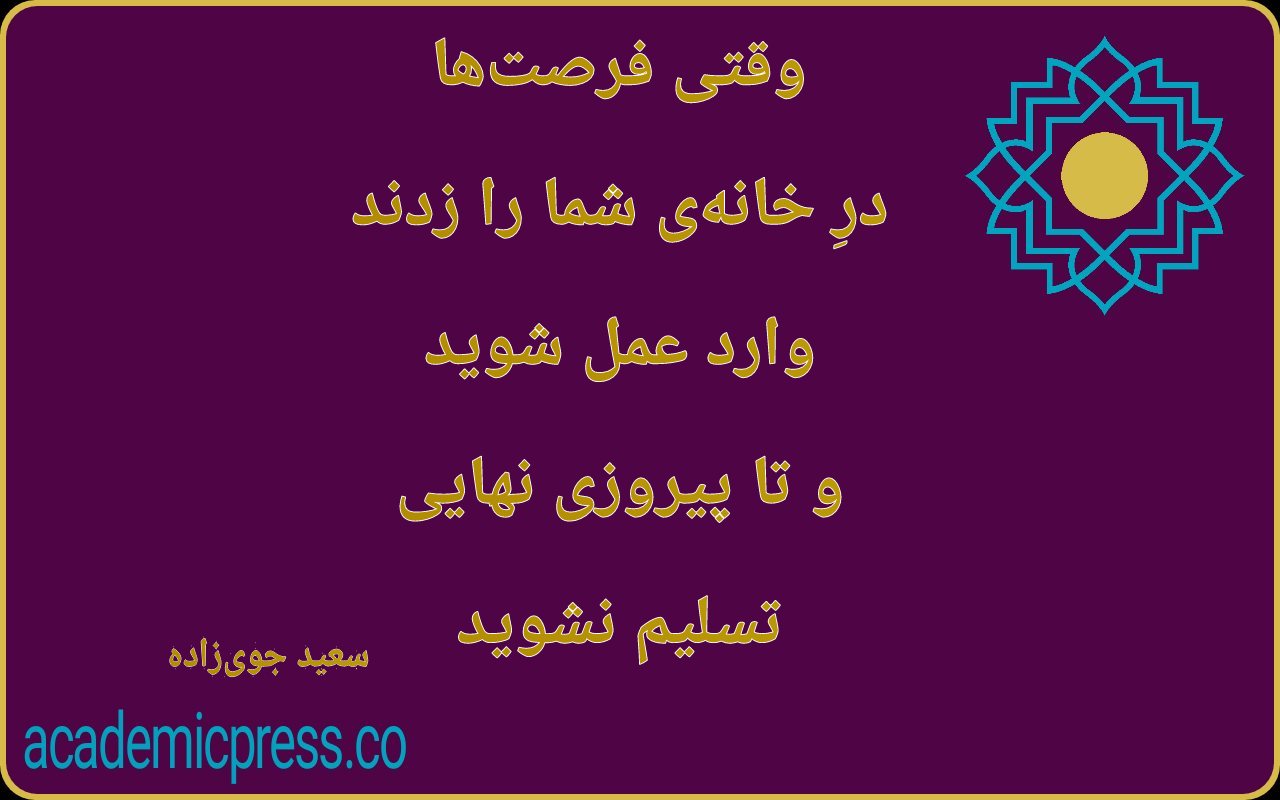 وقتی فرصتها درِ خانهی شما را زدند، وارد عمل شوید و تا پیروزی نهایی تسلیم نشوید. سعید جویزاده