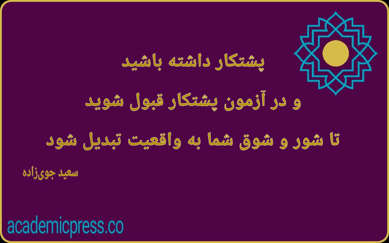 پشتکار داشته باشید و در آزمون پشتکار قبول شوید، تا شور و شوق شما به واقعیت تبدیل شود. سعید جویزاده