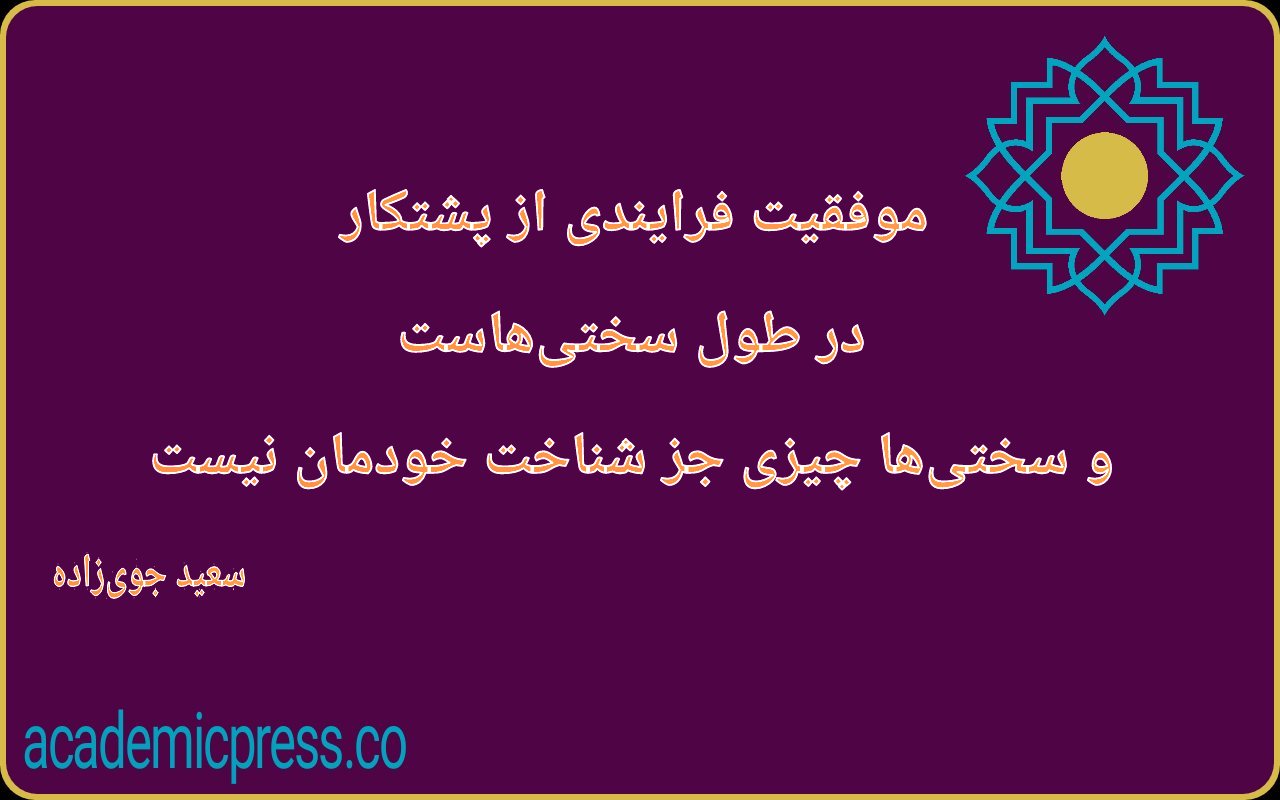 موفقیت فرآیندی از پشتکار در طول سختیهاست. و سختیها چیزی جز شناخت خودمان نیست. سعید جویزاده