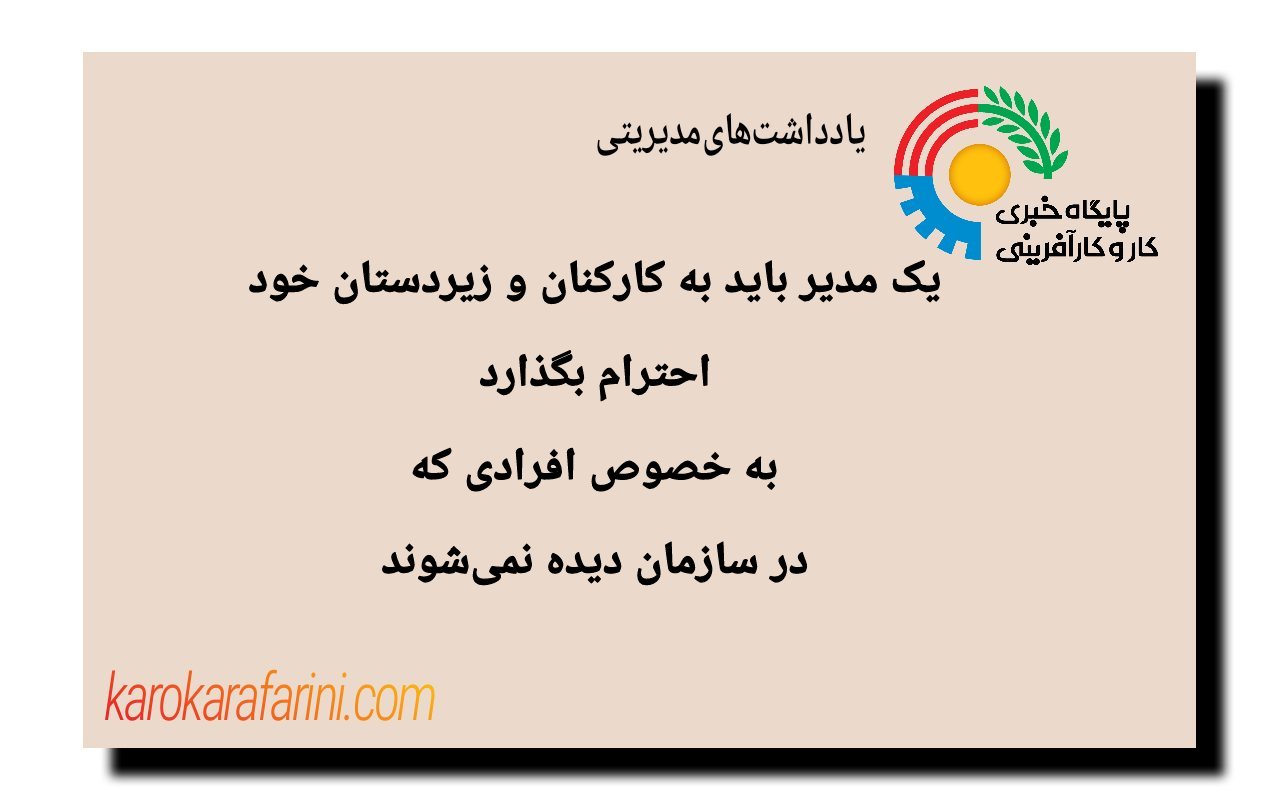 یک مدیر باید به کارکنان و زیردستان خود احترام بگذارد به خصوص افرادی که در سازمان دیده نمیشوند.